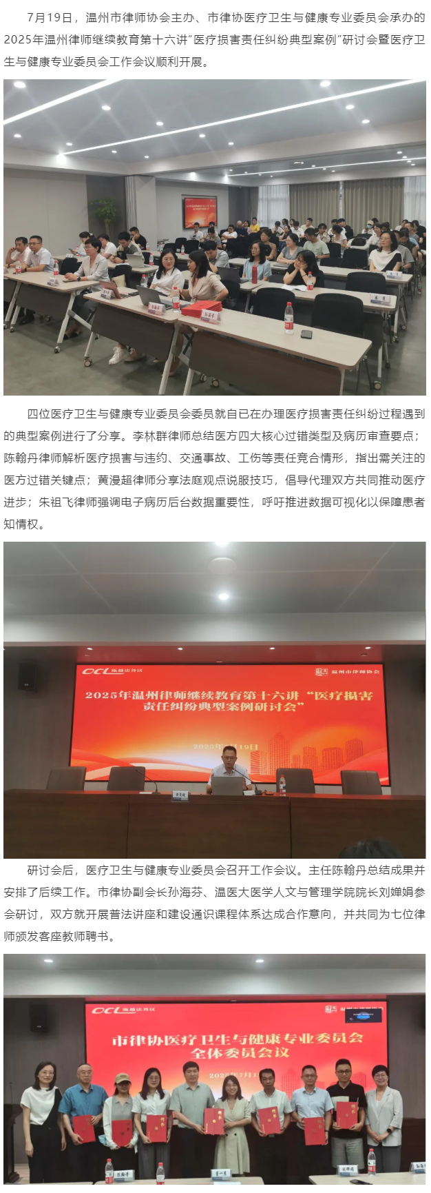 市律协举办继续教育第十六讲“医疗损害责任纠纷典型案例研讨会”暨医疗卫生与健康专业委员会工作会议