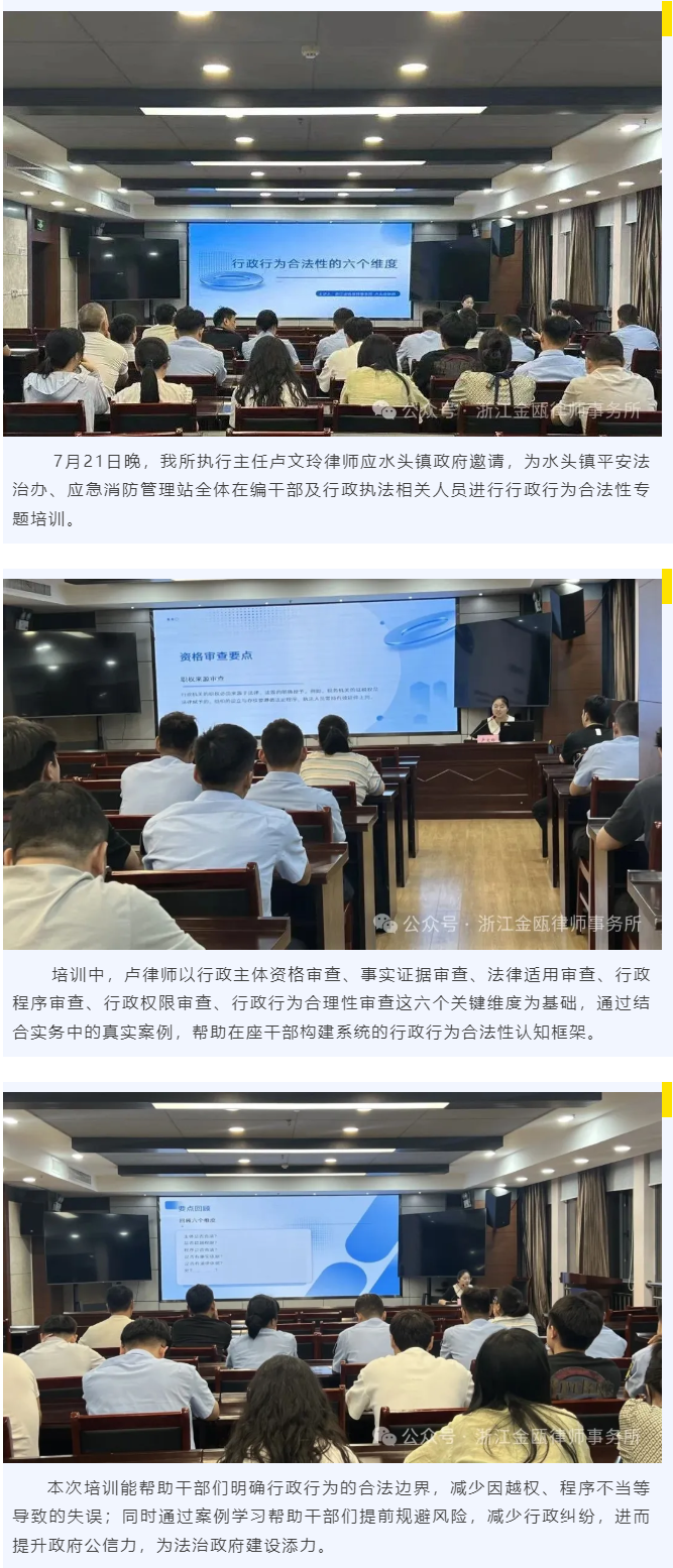 金瓯所卢文玲律师受邀为水头镇机关干部开展行政行为合法性专题讲座