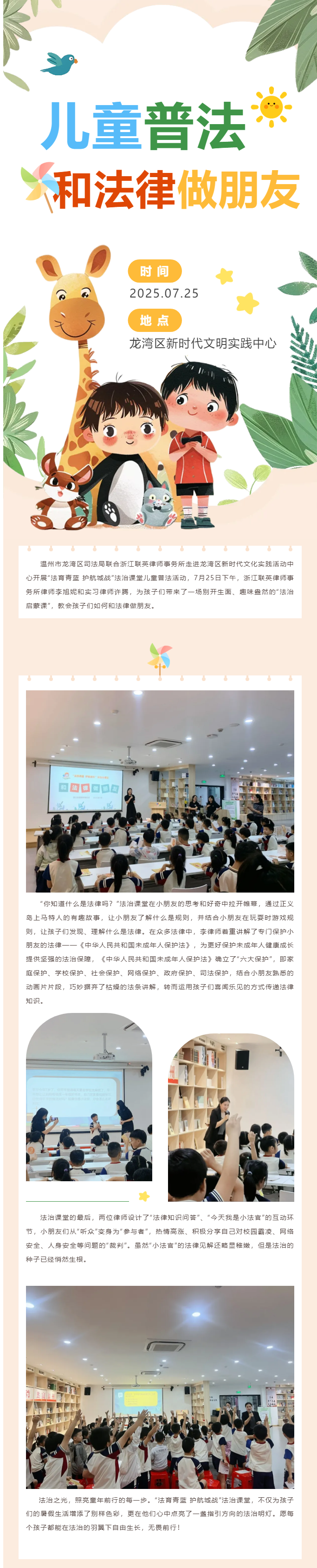 联英所开展“法育青蓝 护航城战”法治课堂儿童普法活动
