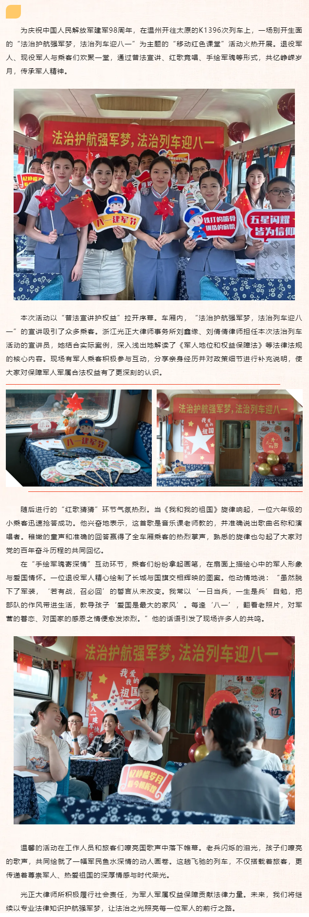 光正大律师开展“法治护航强军梦 法治列车迎八一”主题活动