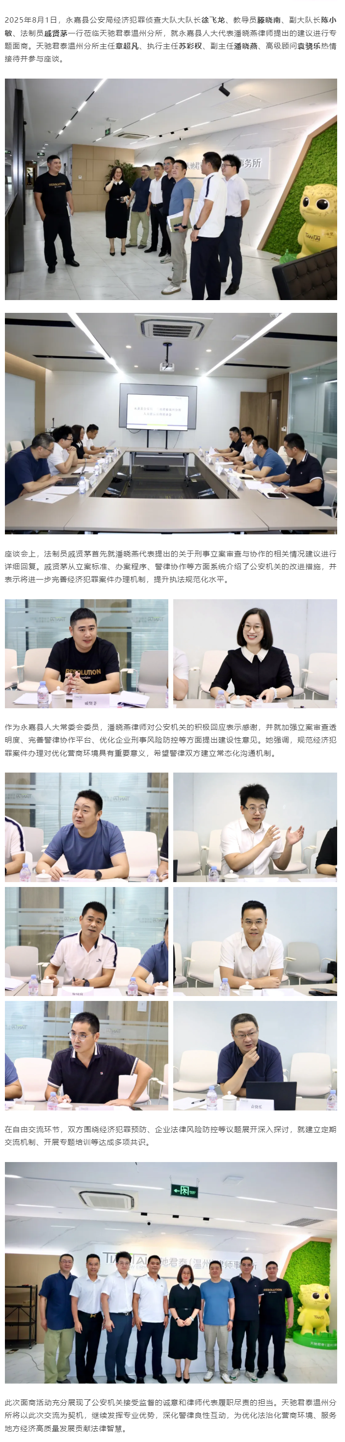 永嘉县公安局经侦大队莅临天驰君泰温州分所开展人大建议面商