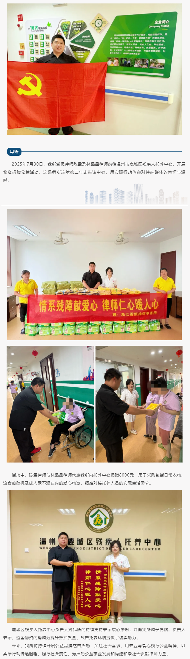 震瓯所向鹿城区残疾人托养中心捐赠爱心物资