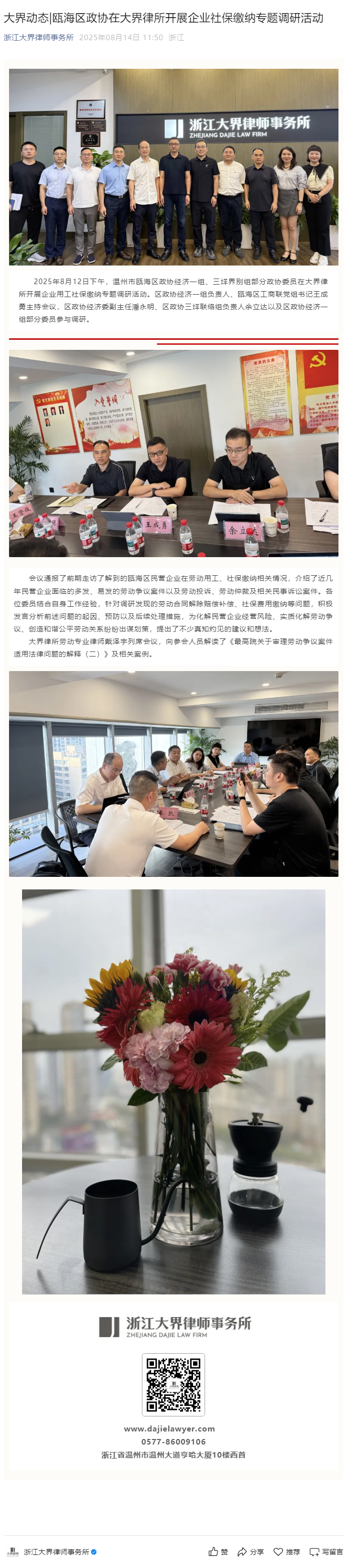 瓯海区政协在大界律所开展企业社保缴纳专题调研活动