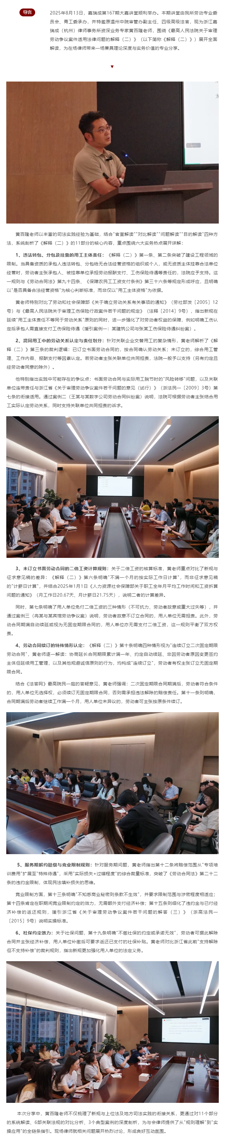 嘉瑞成举办大嘉讲堂:全面解读《最高人民法院关于审理劳动争议案件适用法律问题的解释(二)》