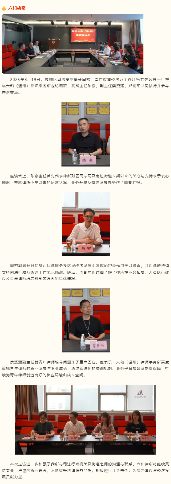 鹿城区司法局副局长周密一行莅临六和温州所走访指导