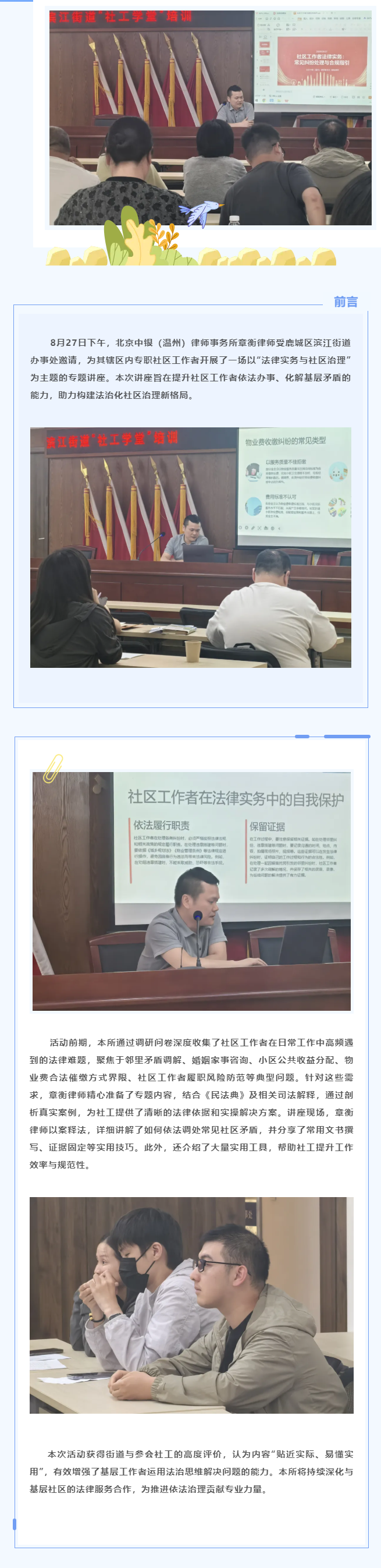 中银温州所章衡律师受邀开展社区工作法律实务赋能讲座