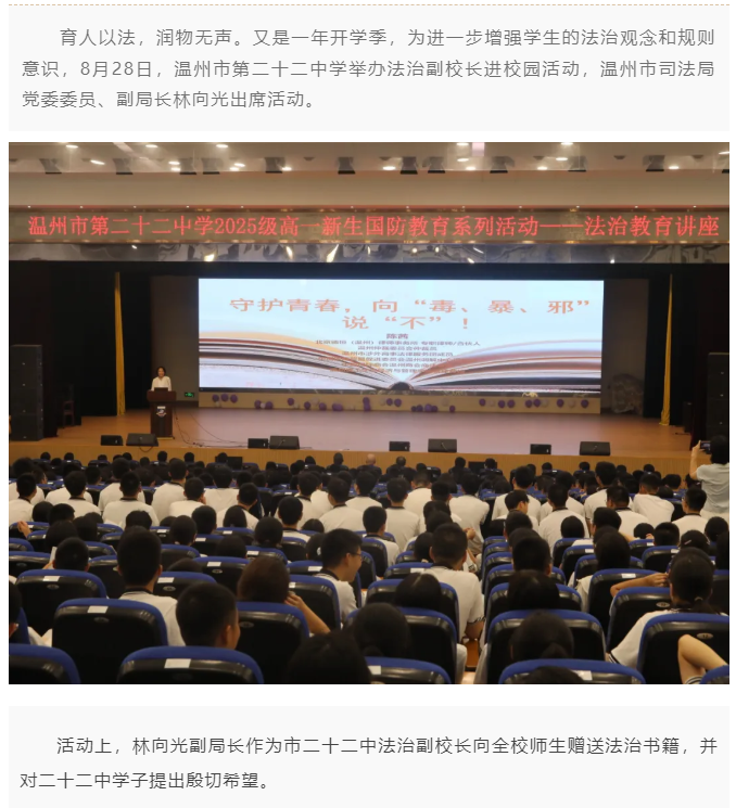 法润青春丨温州第二十二中学举办2025学年第一学期法治副校长进校园活动