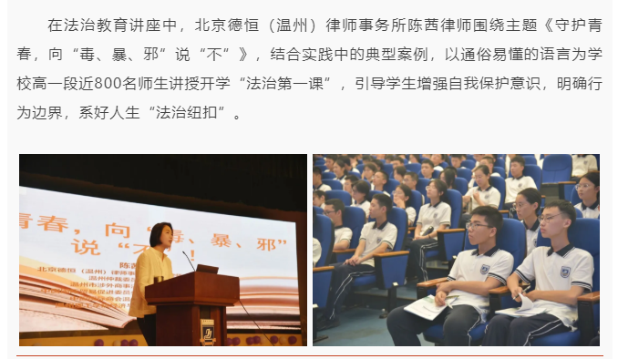 “千所万律公益行”| 金道温州所律师受邀为温州市南浦实验中学开展校园普法讲座