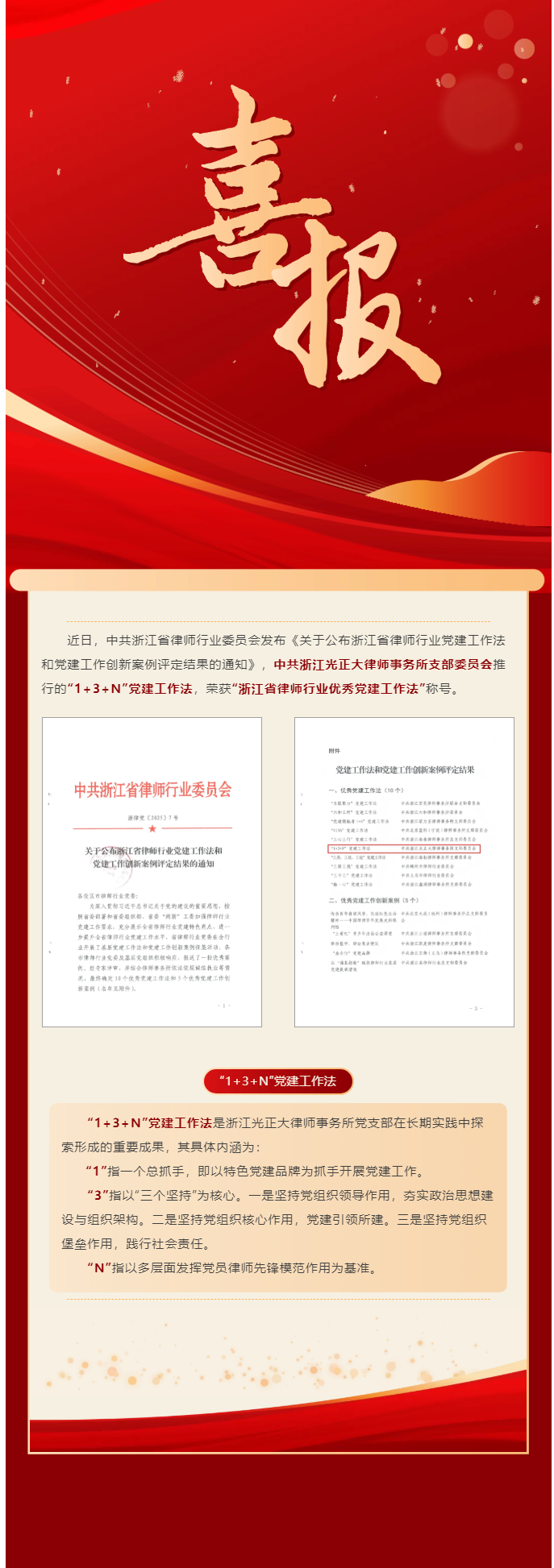 喜报 | 我市光正大所党支部“1+3+N”党建工作法获评浙江省律师行业优秀党建工作法