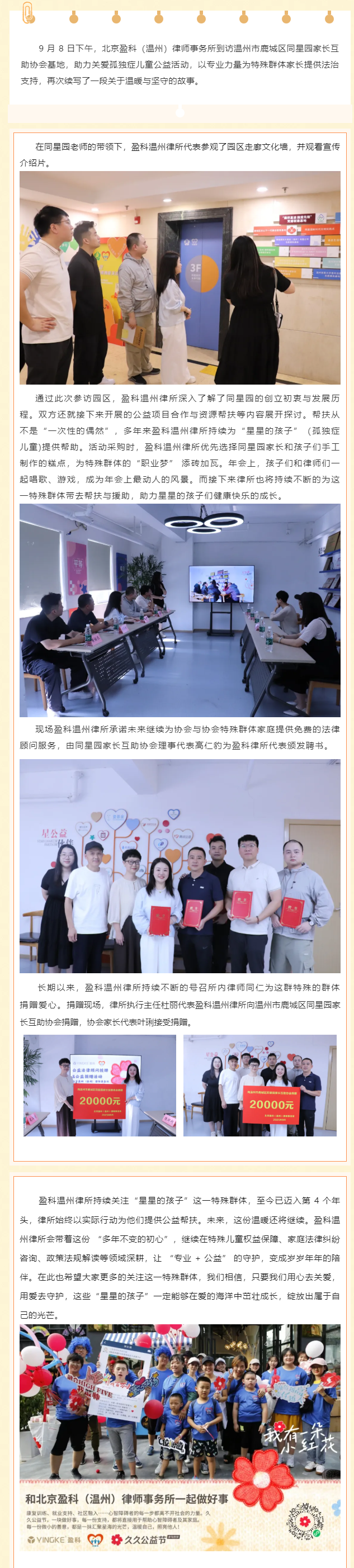 盈科温州律所助力关爱孤独症儿童公益活动,用行动点亮“星星的孩子”的世界