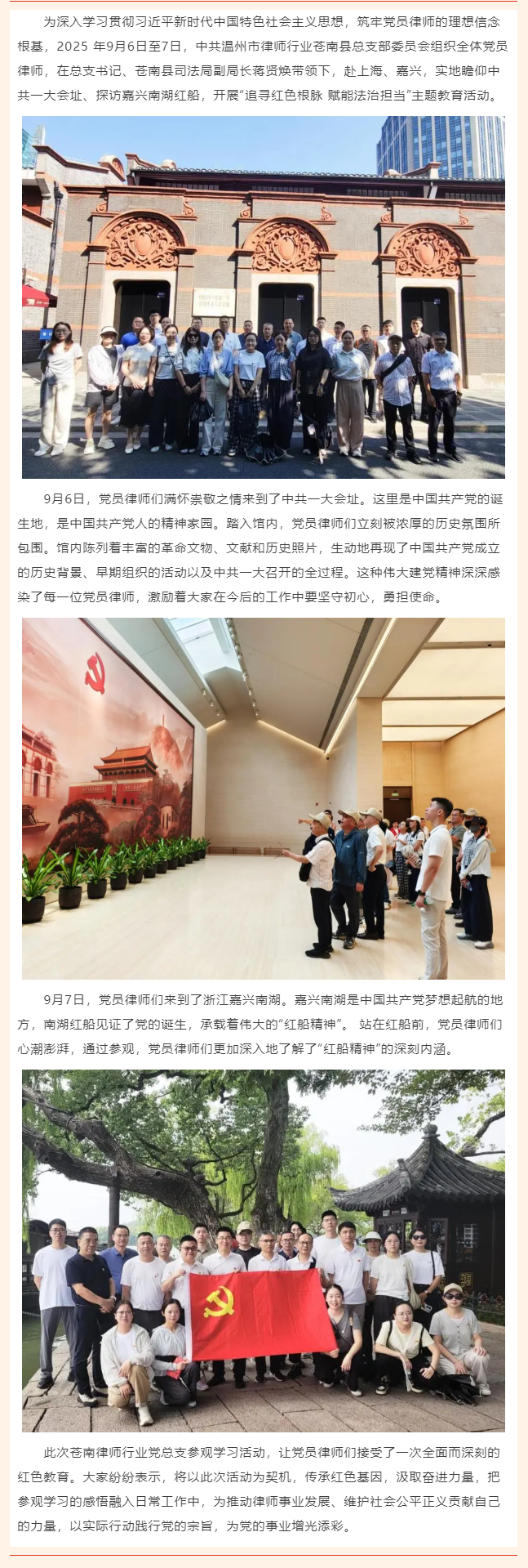 追寻红色足迹 汲取奋进力量——苍南律师行业党总支组织党员律师瞻仰一大会址