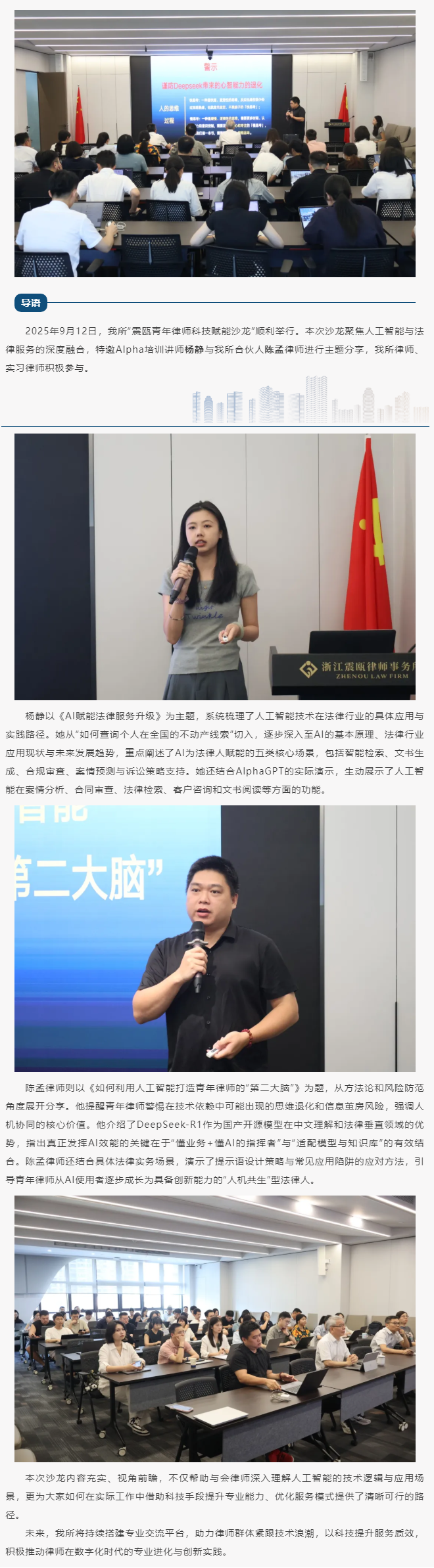 智汇分享 赋能青年丨震瓯青年律师科技赋能沙龙顺利举办