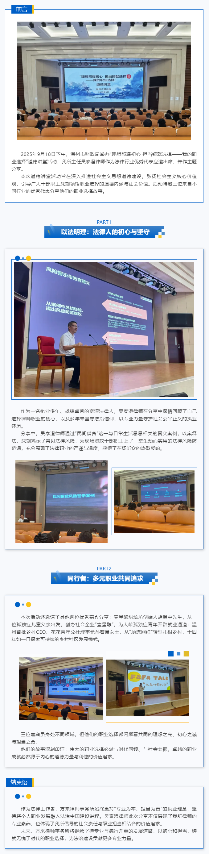 方来律所吴泰澄律师应邀出席市财政局道德讲堂
