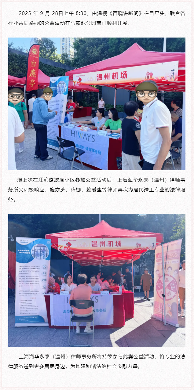 海华永泰温州所律师进马鞍池公园开展公益法律服务