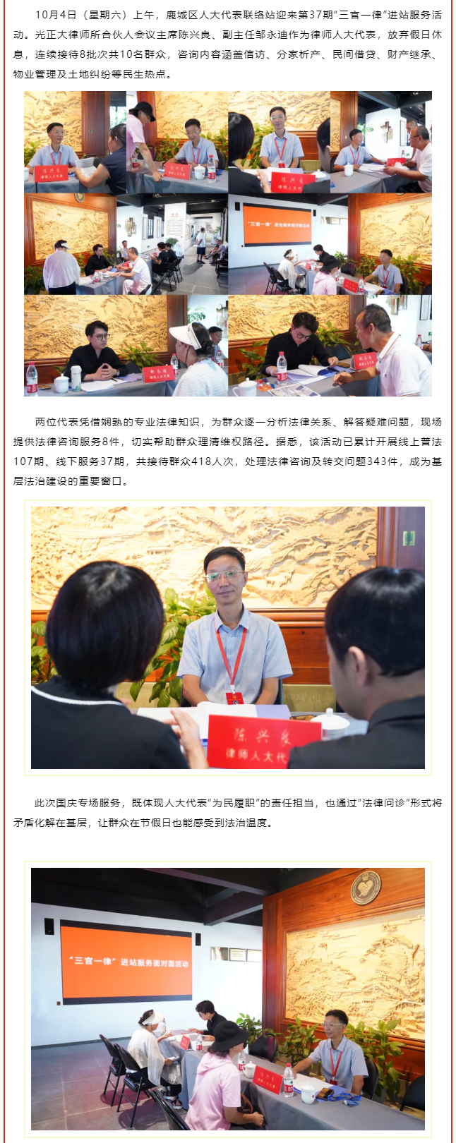 繁忙国庆“三官一律”暖民心|光正大律师所陈兴良、邹永迪代表假日进站,为民解忧