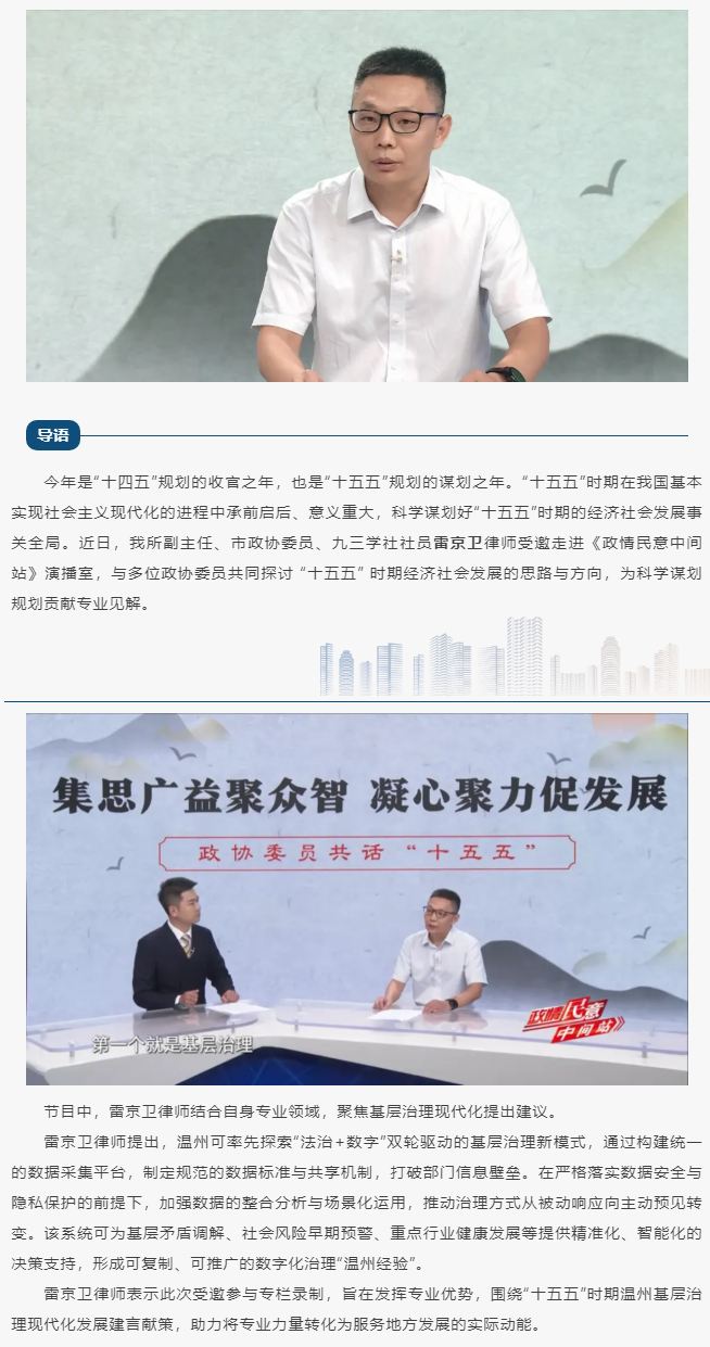 震瓯所雷京卫律师受邀参与《政情民意中间站》栏目录制