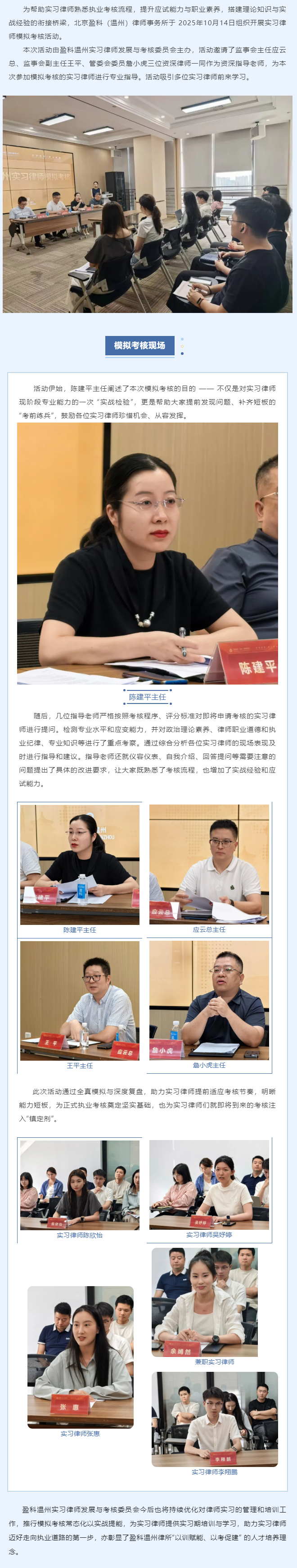 盈科温州律所举办实习律师模拟考核活动,搭建理论与实战的衔接纽带
