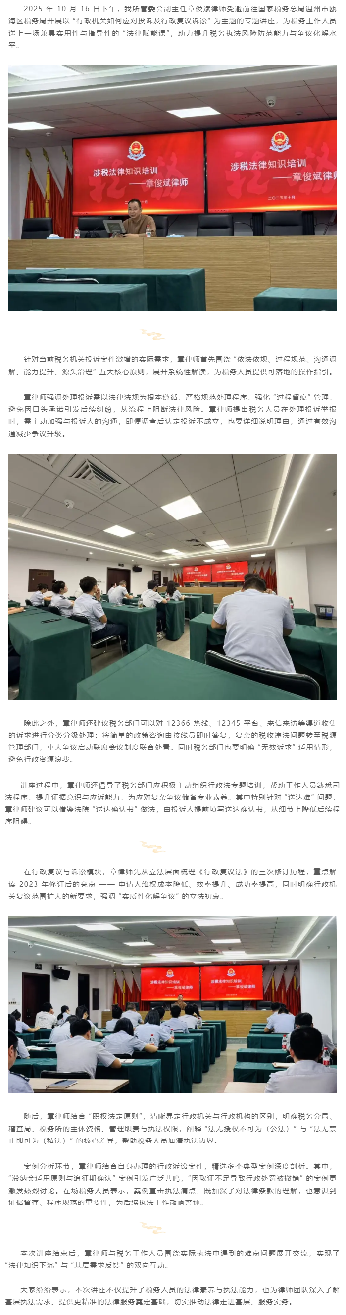 京师温州律所章俊斌律师受邀前往瓯海区税务局开展行政法专题讲座