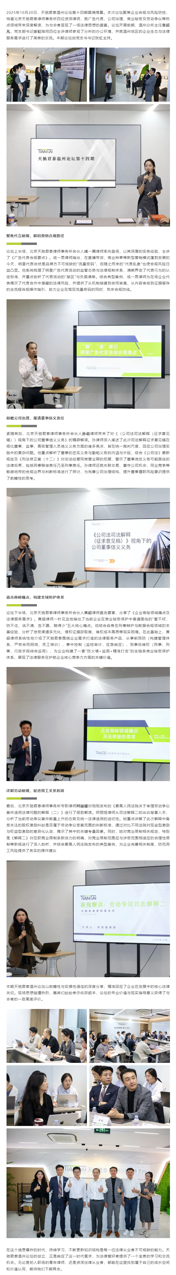 天驰君泰温州论坛第十四期“聚焦法律新规,赋能企业实践”成功举办