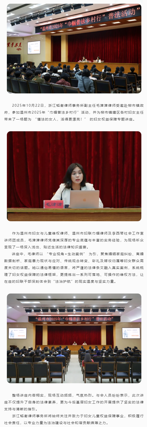 韬衡所毛津津律师受邀开展“巾帼普法乡村行”普法讲座
