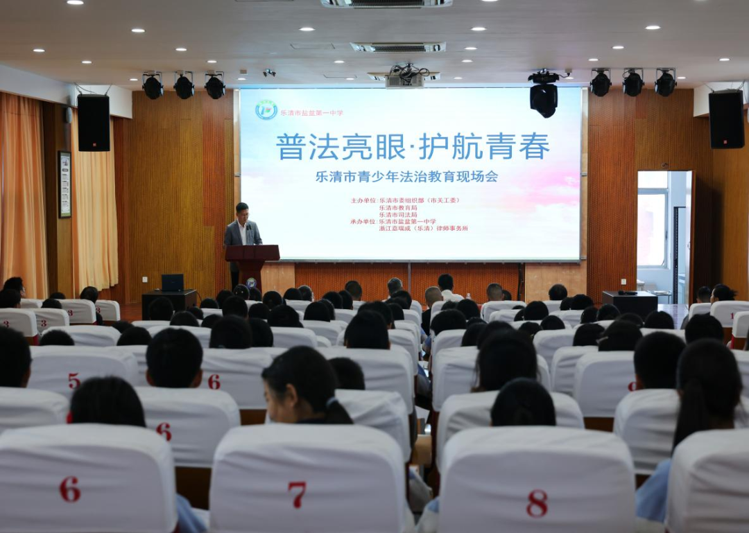 金秋十月,硕果盈枝。在《中华人民共和国法治宣传教育法》即将于11月1日正式施行之际,一场承载着青少年法治教育创新实践成果的盛会于10月22日在乐清市盐盆第一中学隆重举行。由乐清市委组织部(市关工委)、市教育局、市司法局联合主办,盐盆第一中学与浙江嘉瑞成(乐清)律师事务所共同承办的 “普法亮眼・护航青春” 青少年法治教育现场会,以鲜活的实践案例、创新的普法模式,为新时代青少年法治教育注入了强劲动力。作为深耕校园普法领域十余年的中坚力量,嘉瑞成乐清律所凭借从1.0到2.0的跨越式升级,用专业与坚守书写了律师行业参与青少年法治教育的精彩答卷。