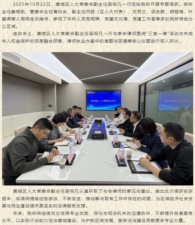 鹿城区人大常委会副主任吴祝凡一行莅临人民联合所调研指导工作