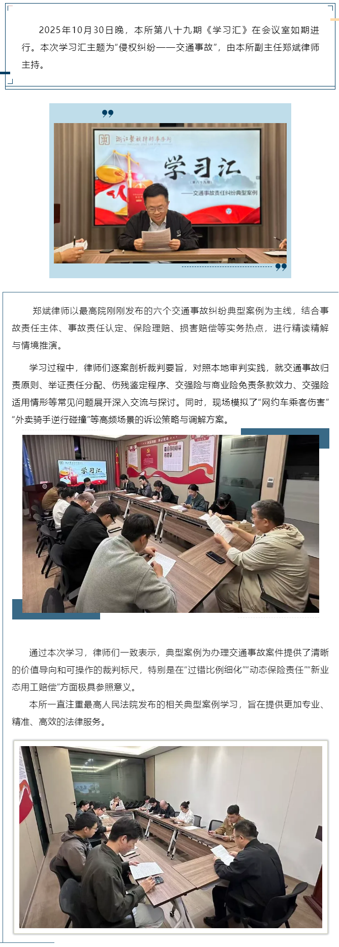 聚祺所开展“侵权纠纷——交通事故”主题学习汇