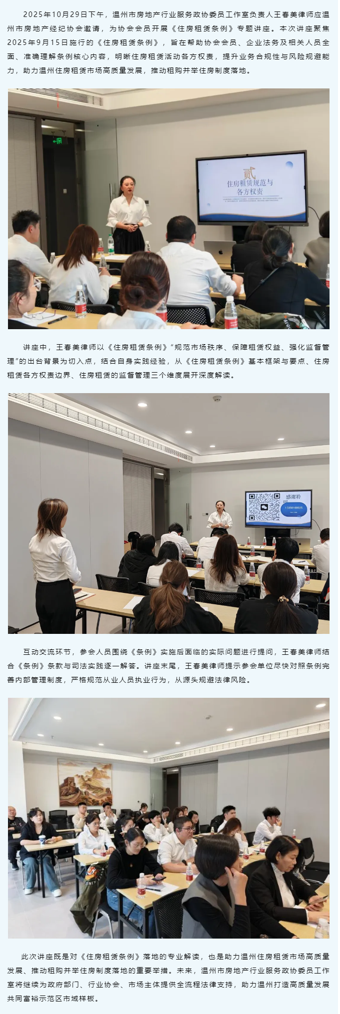 光正大所王春美律师受邀开展《住房租赁条例》专题讲座