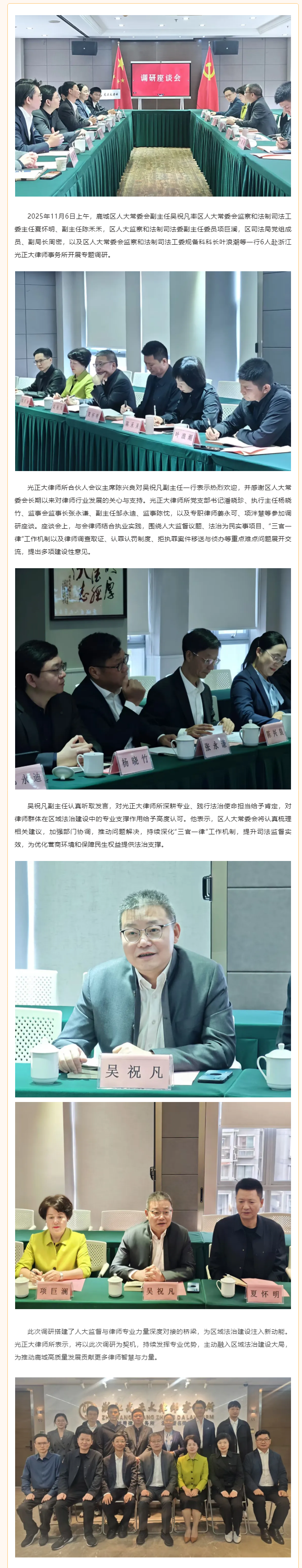 人大监督赋能法治建设!鹿城区人大常委会吴祝凡副主任一行赴光正大律师所专题调研