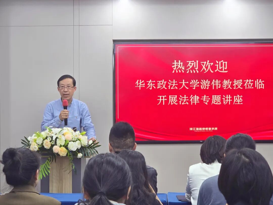 2025年11月12日下午,海昌所第51期“海享会”顺利举行。本期沙龙特邀中国刑法学研究会学术委员会委员、华东政法大学司法研究中心主任游伟教授担任主讲嘉宾,由本所首席合伙人陈静律师主持。游伟教授以“律师的专业知识与综合能力提升”为主题,结合其丰富的司法实践与理论研究经验进行深度分享。他指出,当代律师的核心竞争力,已不仅来源于法律专业能力本身,更在于融合多元文化、构建复合型知识结构的能力,这种融合不仅拓展认知边界,更有助于提升多维认知水平,使律师在复杂案件中能够灵活转换视角、精准把握本质。