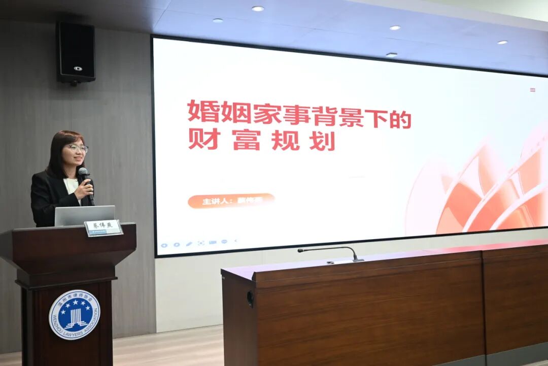 浙江联英律师事务所蔡伟燕律师带来的《婚姻家事背景下的财富规划》主题分享,将复杂的法律知识转化为生动易懂的案例。她不仅让听众了解了婚姻家事与财富规划之间的紧密联系,更体现了法律行业服务社会、普治惠民的公益情怀。