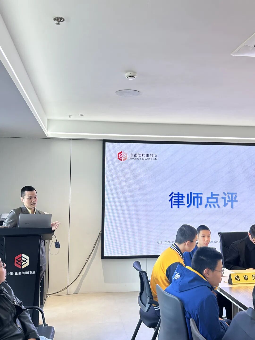 模拟法庭结束后,王伟鑫、章衡律师依次对学生们的表现进行专业点评。律师们肯定了同学们在角色演绎、程序把握上的亮点,同时针对庭审中的细节问题进行细致指导,帮助学生更清晰地理解法律条文的适用场景与庭审程序的核心意义。