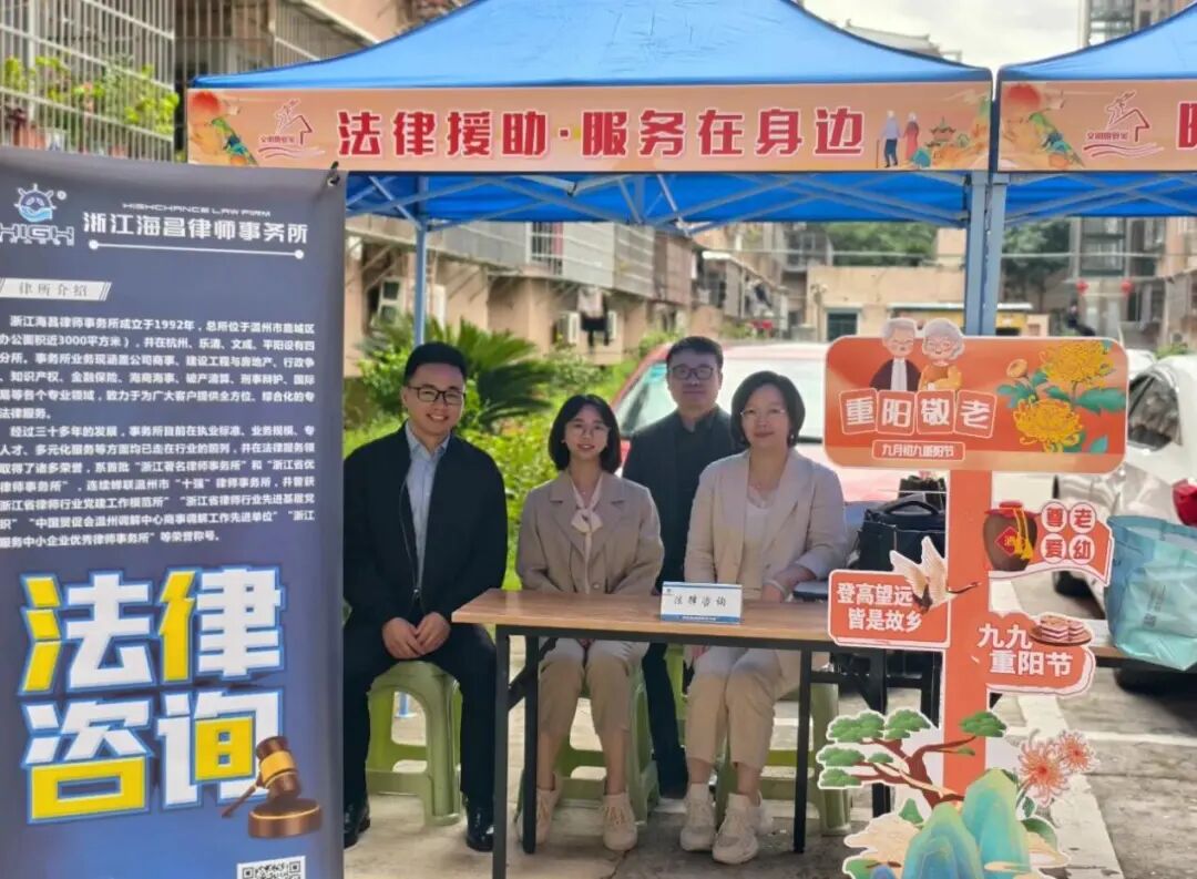 10月29日,蒋家桥社区电化小区举办“爱满金秋·情暖重阳”便民市集暨“文明微管家”宣传推广活动,浙江海昌律师事务所陈洁、胡晓虹、朱竟业、陈楚、蔡嘉瑞五位律师,作为鹿城区首批“家庭律师”试点律所的代表参加活动。