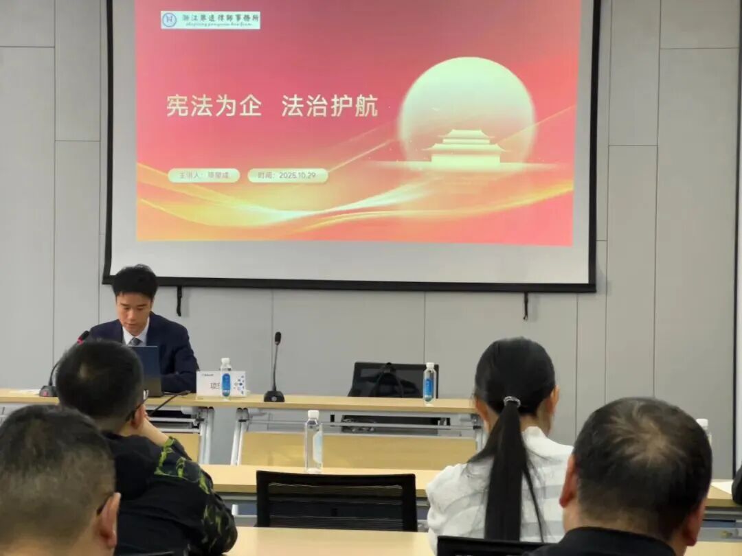 10月29日,浙江攀远律师事务所项望成律师受邀前往温州市市政开发建设有限公司,开展题为“宪法为企,法治护航”的专题讲座。