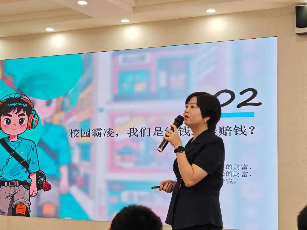 10月27日,浙江哲昌律师事务所周春云律师在瑞安市安阳实验中学为初中生开展关于校园霸凌方面的讲座。