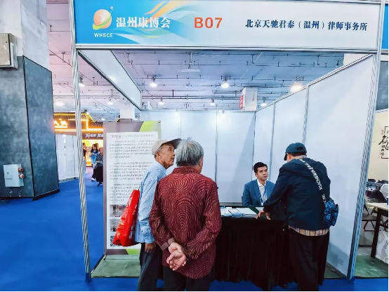 10月24-26日,2025首届温州康养时尚生活博览会上,北京天驰君泰(温州)律师事务所作为参展商之一,由副主任黄雅俊律师带队,王丰敏、项光磊、林策、季无忌、王大滔、娄明明等律师共同组成七人团队,于现场设立公益法律咨询展位,开展法律咨询服务。