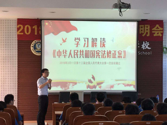 5月15日下午,龙湾区司法局公职律师张泽应邀在龙湾职业技术学校开展校园公益普法活动。张泽律师以“弘扬宪法精神,建设法治中国”为主题,对宪法的法律地位、构成、基本原则以及公民的基本权利与义务等内容进行讲解。他指出,宪法是我国的根本大法,具有最高法律效力和最高的法律地位。他以通俗易懂的方式,结合时事新闻、社会热点案例等讲解公民的基本权利。希望同学们在日常生活中养成遵守宪法的习惯,树立宪法意识,自觉维护宪法尊严。