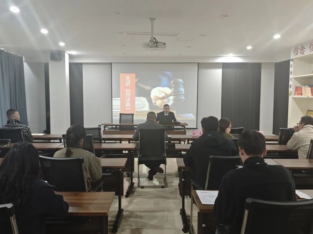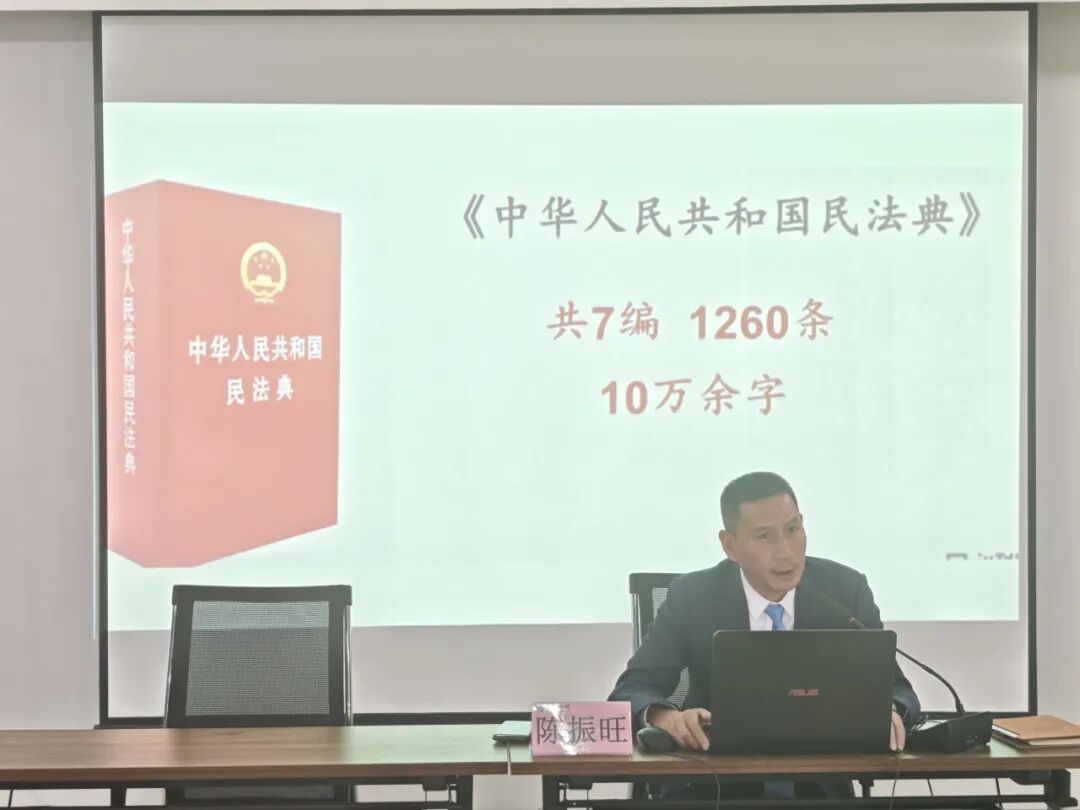 讲座中,陈振旺律师聚焦企业运营与员工生活实际,重点解读了民事法律行为无效、可撤销情形及居住权、继承权、夫妻共同财产等核心制度,并延伸探讨了人格权保护、高空抛物等社会热点案例,生动阐释了民法典在保障权利、规范秩序方面的重要作用。