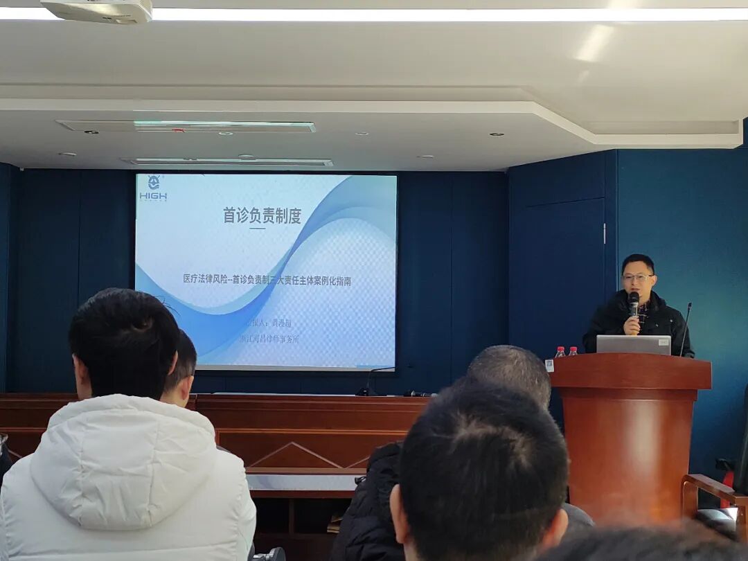 为助力医疗机构规范诊疗管理、加强医疗风险防范,2025年12月4日,浙江海昌律师事务所合伙人黄漫超律师受龙湾区第二人民医院邀请作《规避医疗风险——首诊负责制三大责任主体案例化指南》的专题培训。本次讲座旨在通过真实案例解析,系统梳理首诊负责制下的责任架构与法律风险点,提升医务人员依法执业意识和医疗安全防范能力。