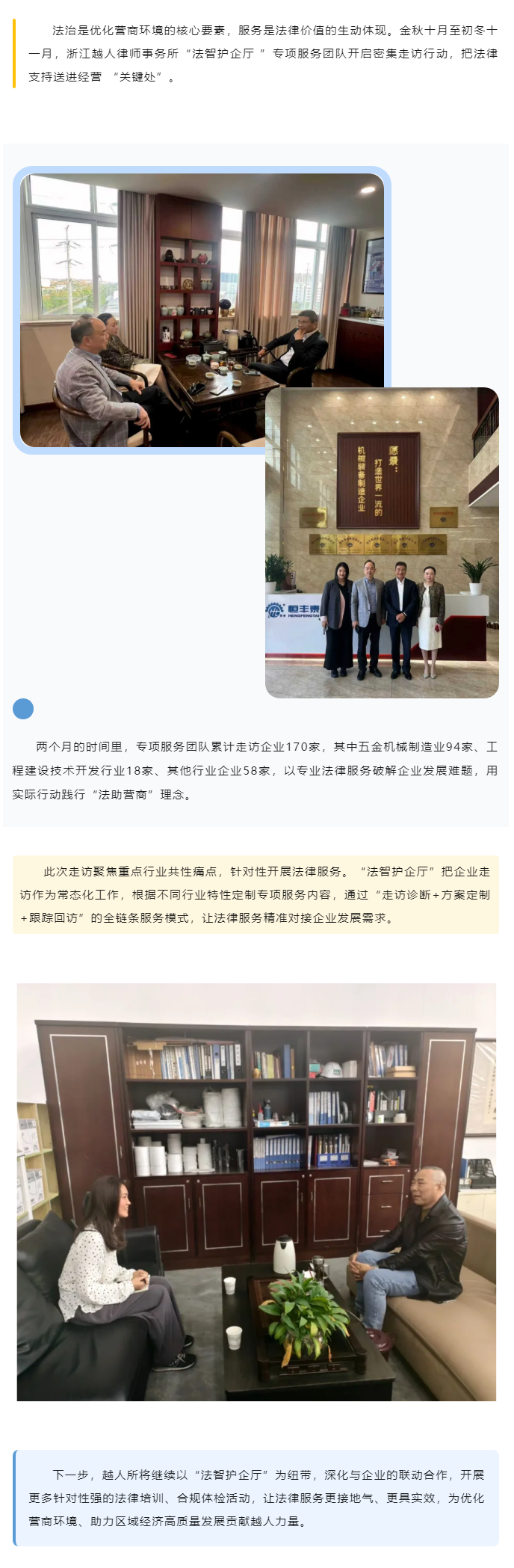法助营商之 “法智护企厅” | 越人律师事务所走访企业,把法律支持送进经营 “关键处”