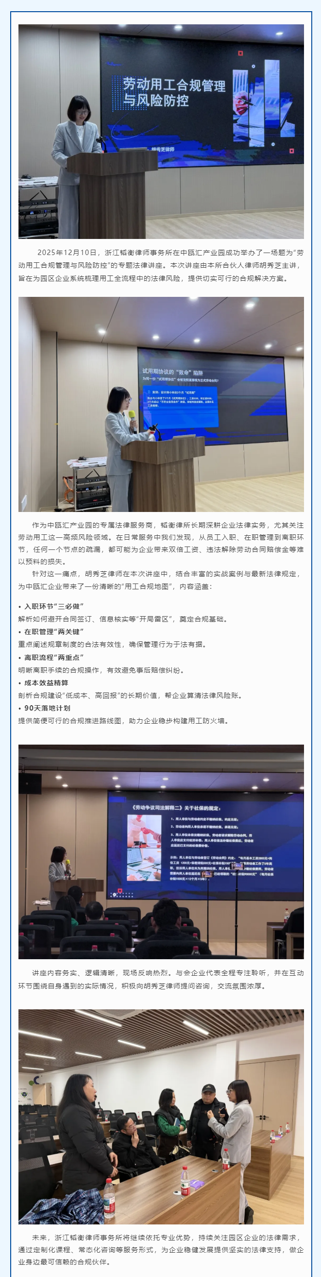 韬衡所律师走进中瓯汇产业园开展劳动用工风险防控专题讲座