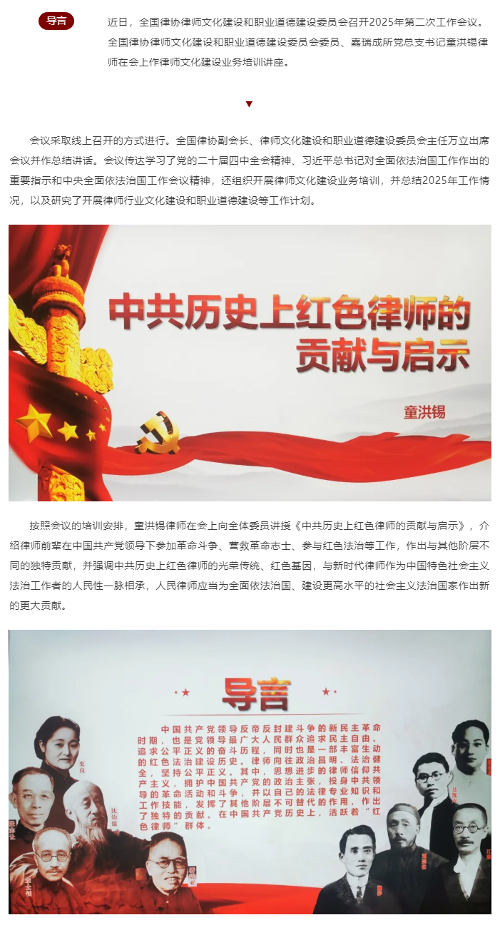 嘉瑞成所童洪锡律师为全国律协律师文化建设和职业道德建设委员会委员授课
