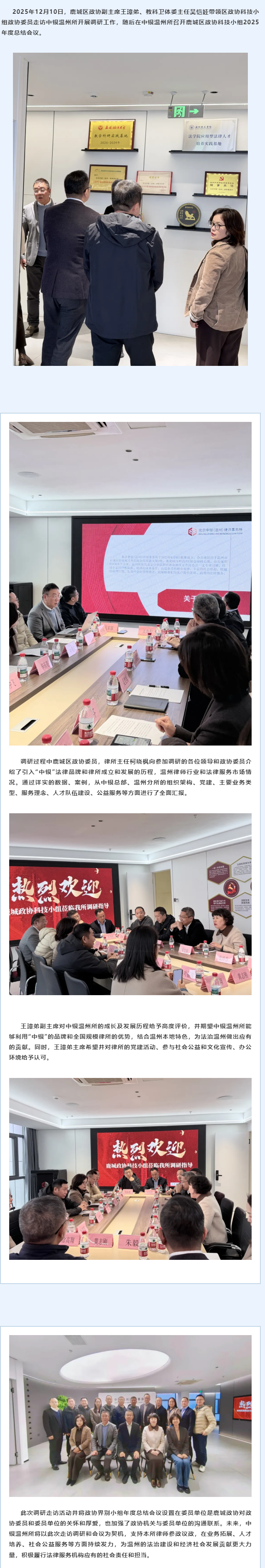 鹿城区政协副主席王璋弟率领政协委员到中银温州所调研走访