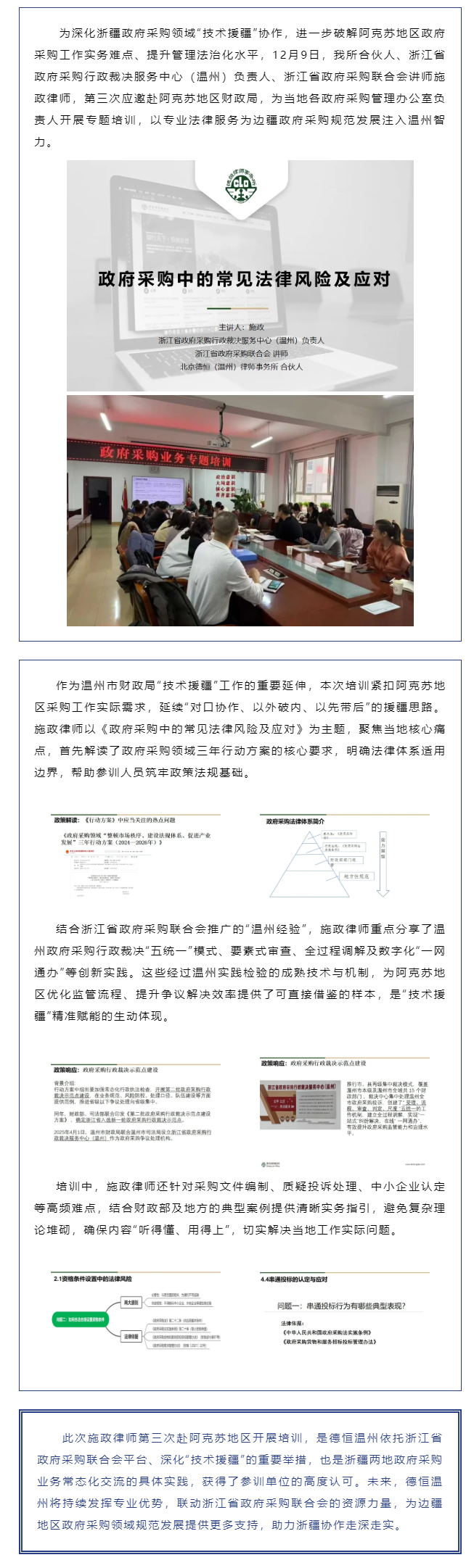 “技术援疆”再深化 | 德恒温州所施政律师三度赴阿克苏开展政府采购业务专题培训