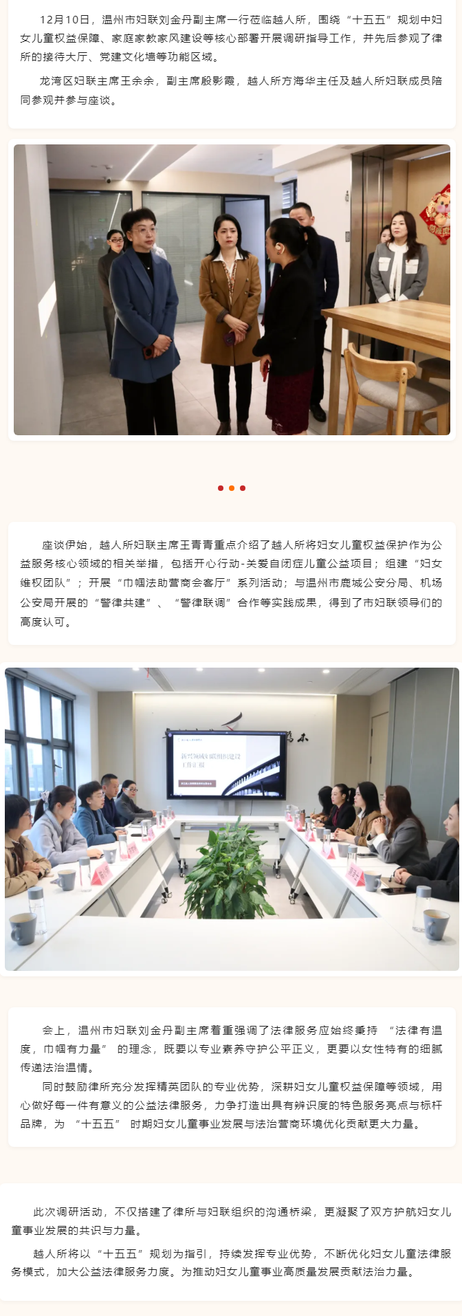 市妇联刘金丹副主席一行莅临越人所调研指导,共探“十五五规划”