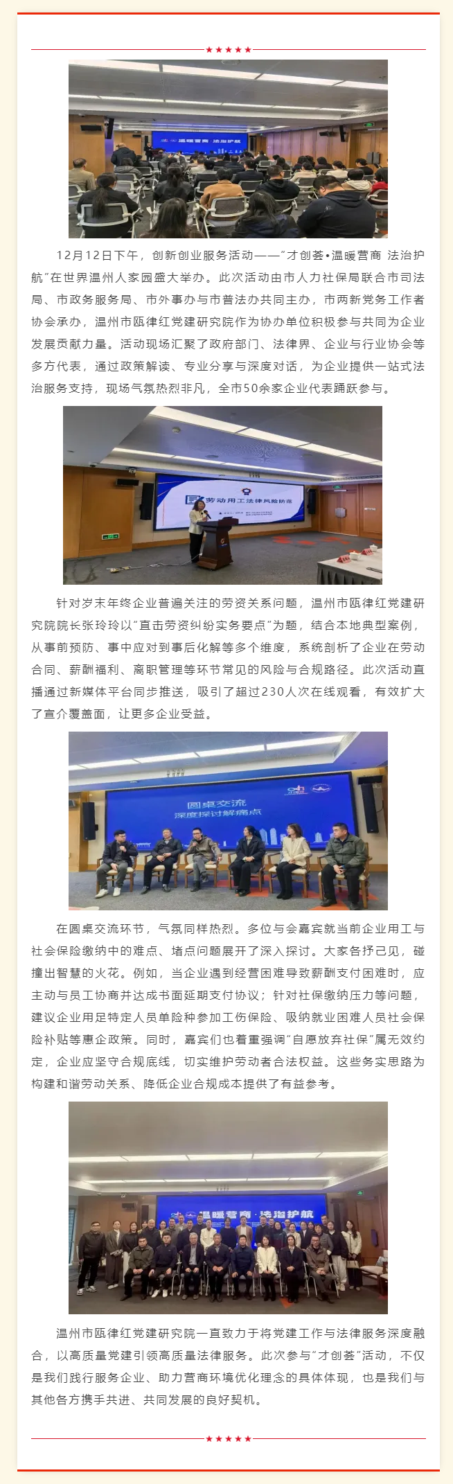 温暖营商 法治护航丨温州市瓯律红党建研究院助力企业高质量发展