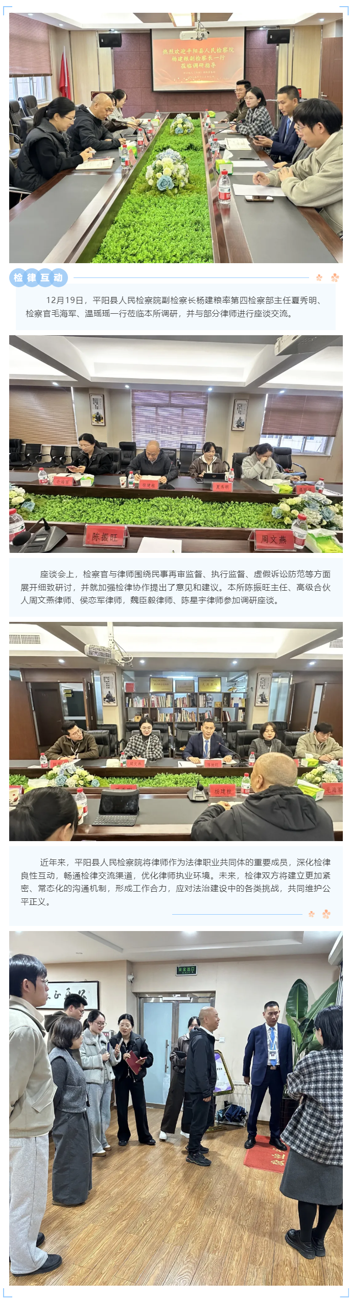 平阳县人民检察院杨建粮副检察长一行莅临越人平阳所调研