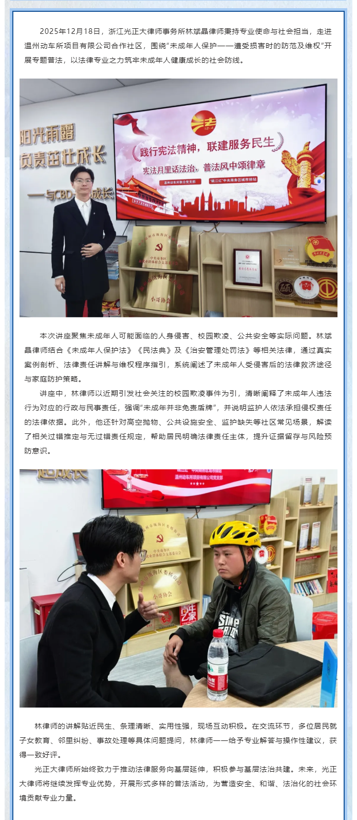 光正大律师所林斌晶律师受邀开展未成年人保护法律宣讲