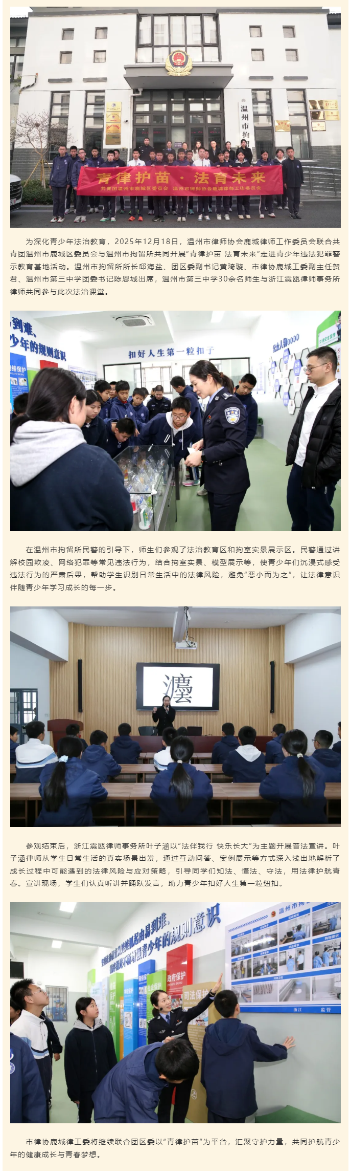 市律协鹿城律工委联合团区委、市拘留所开展“青律护苗”开启青少年沉浸式法治课堂