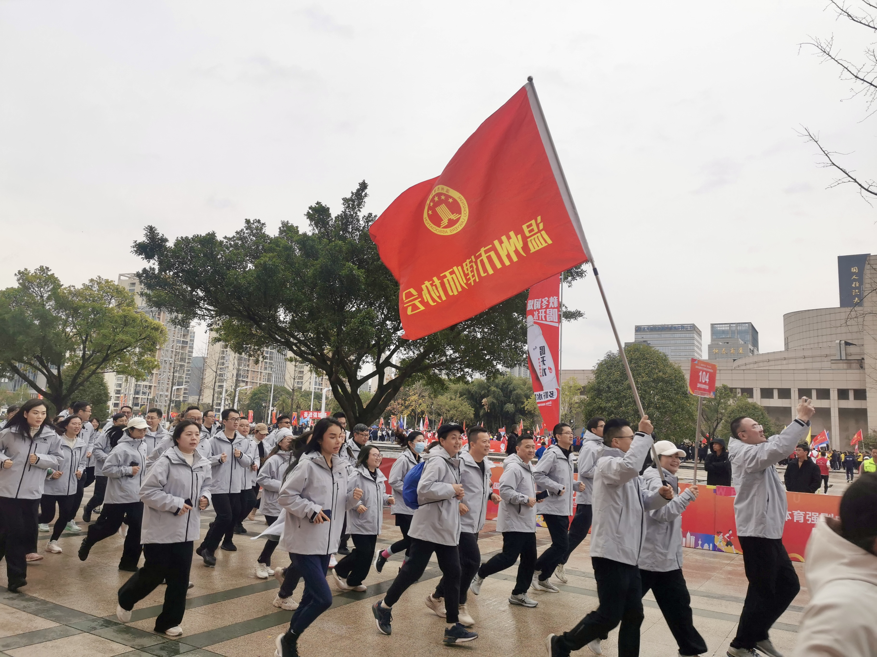7时30分,《义勇军进行曲》庄严奏响,鲜艳的五星红旗在激昂的旋律中冉冉升起。全体人员面向国旗肃立,高唱国歌,行注目礼。发令汽笛鸣响后,各方队依次从世纪广场出发,沿市府路、府东路、温州大道、三友路、锦江路、府西路、绣山路有序行进,最终抵达人民大会堂,全程约3.8公里。由60名律师组成的温州律师方阵,服装整齐、步伐铿锵,以昂扬的姿态跑进新的一年,用奔跑的身影诠释着崇法为民的职业精神。